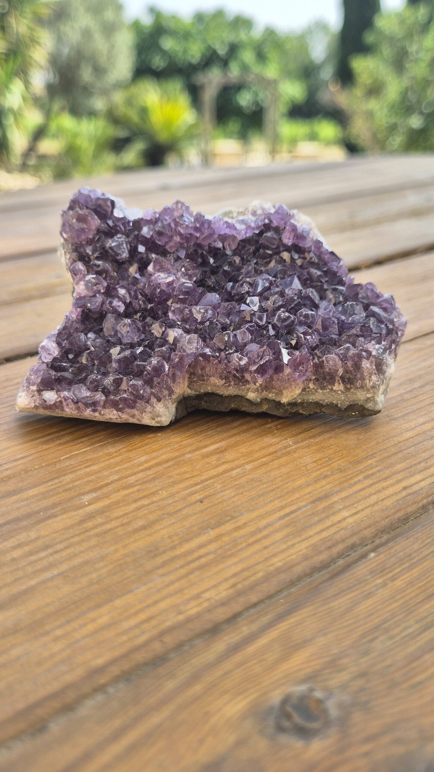 Plongez dans l’univers enchanteur de Kazespirit avec cette magnifique améthyste druze brute de qualité extra. Chez Kazespirit, chaque pièce est sélectionnée avec soin pour offrir des minéraux uniques, porteurs d’énergie et de beauté naturelle. Cette druze d’améthyste se distingue par ses cristaux éclatants d’un violet profond, symboles de sérénité, de protection et d’élévation spirituelle.