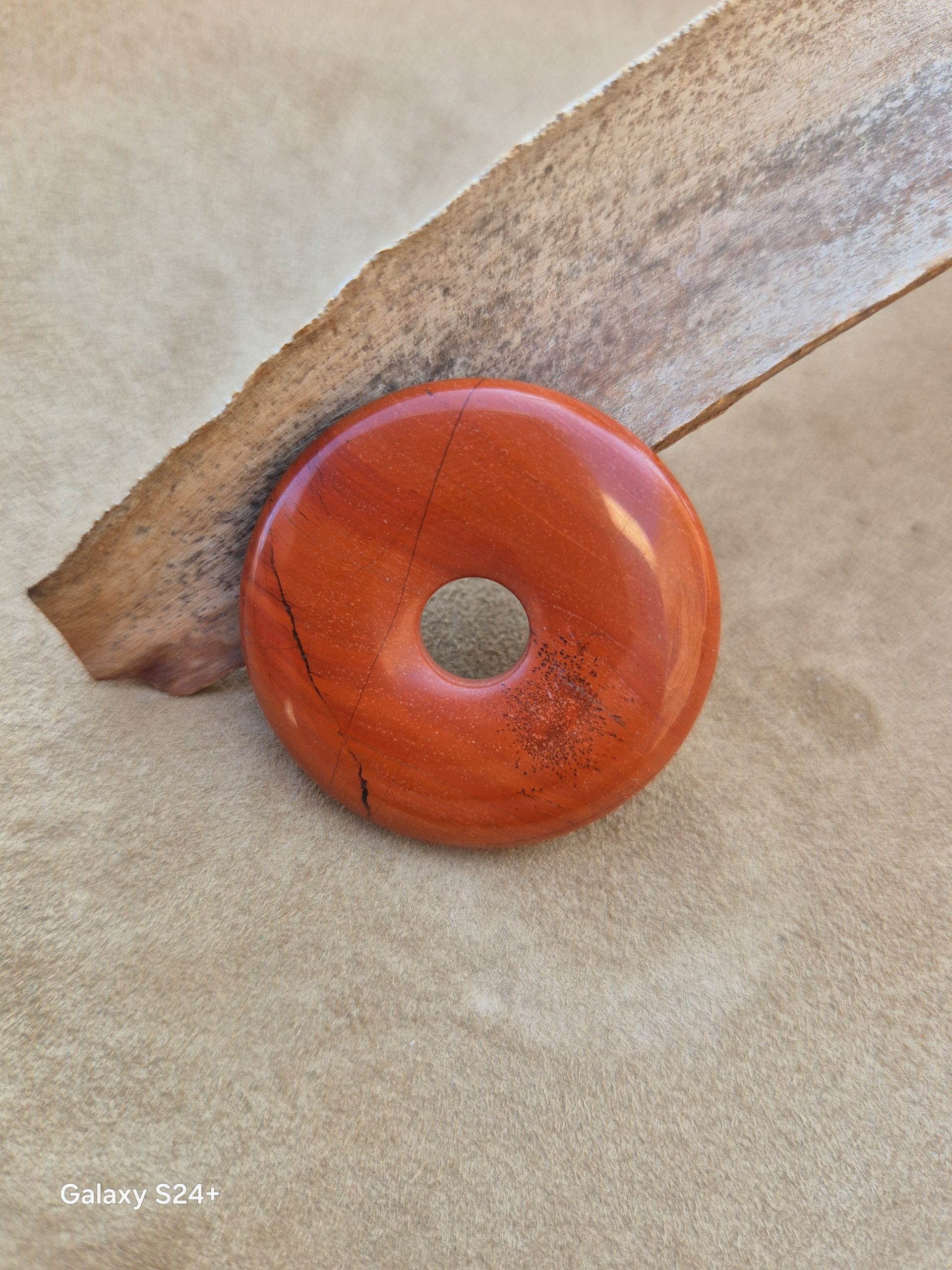 Découvrez le PENDENTIF DONUTS Jaspe Rouge de Kazespirit, un bijou unique alliant esthétique et bienfaits énergétiques. Le jaspe rouge est une pierre de stabilisation et d'ancrage, favorisant la vitalité ainsi que la force. Ce pendentif en forme de donut est non seulement attrayant mais aussi idéal pour harmoniser vos énergies. Sa couleur rouge éclatante évoque le dynamisme et la passion, faisant de ce pendentif un accessoire parfait pour rehausser n'importe quelle tenue. Emportez avec vous cette source d'énergie positive au quotidien.