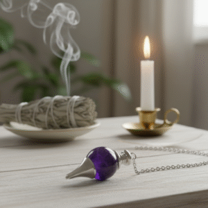 Enfin, le coffret contiendra un pendule sphère, un outil précieux pour affiner vos perceptions et approfondir votre connexion intuitive. Il est aussi à choisir par vous selon votre attirance parmi l’un des 3 pendules pré sélectionnés pour vous