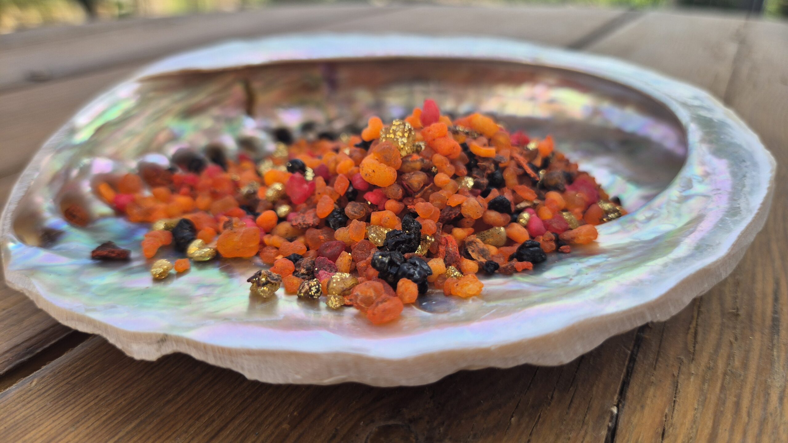 Conçu pour les moments de prière, de purification ou de recentrage, il diffuse des arômes profonds et enveloppants, porteurs de réconfort et d’espérance. À brûler dans une coquille d’ormeau par exemple, il crée une atmosphère sacrée propice à la libération des charges émotionnelles, à la guérison intérieure et à la confiance retrouvée.