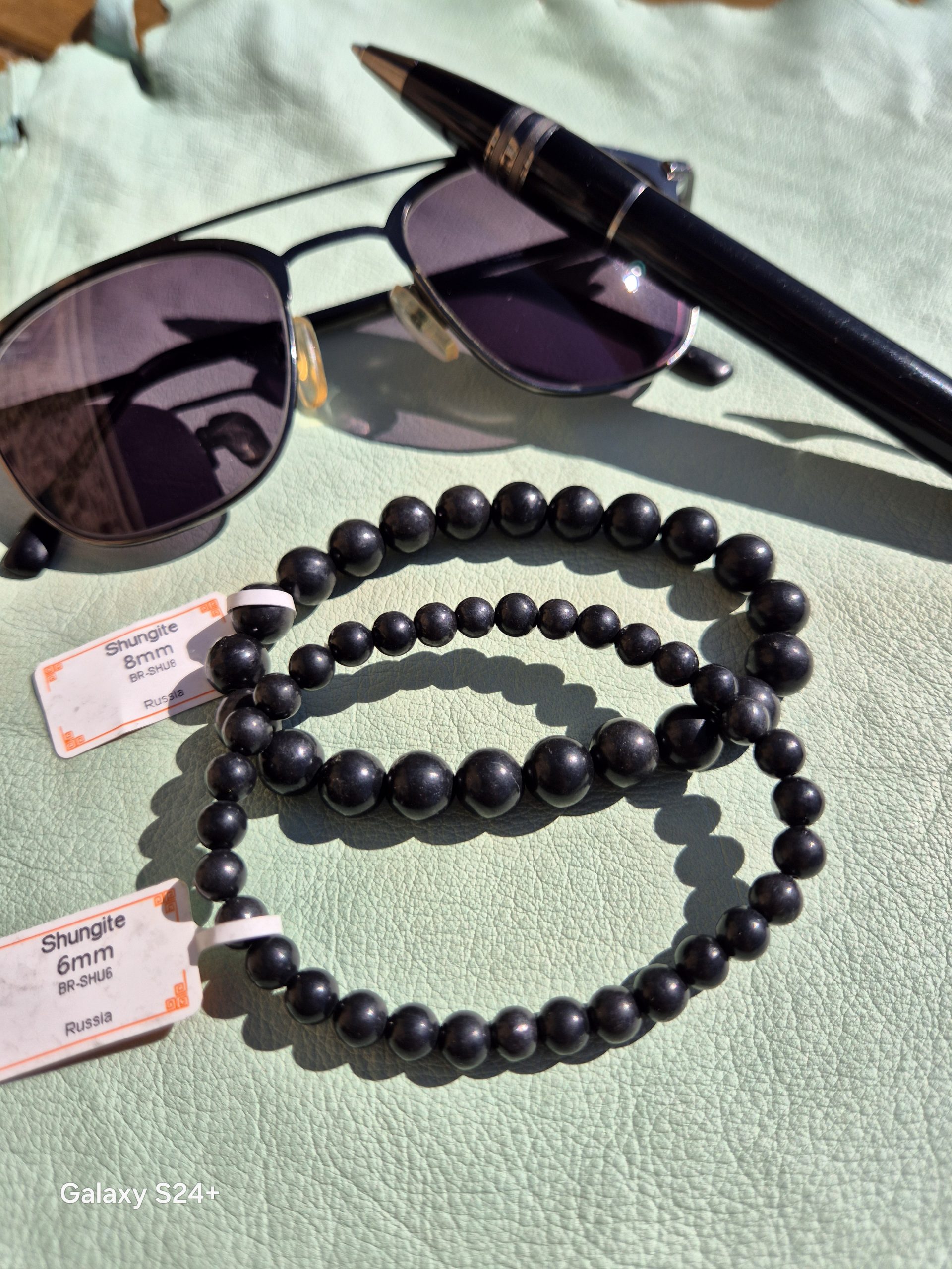 Nos bracelets sont composés de perles de shungite de6 et 8 mm, offrant une protection continue tout au long de la journée. Ils allient élégance et efficacité :