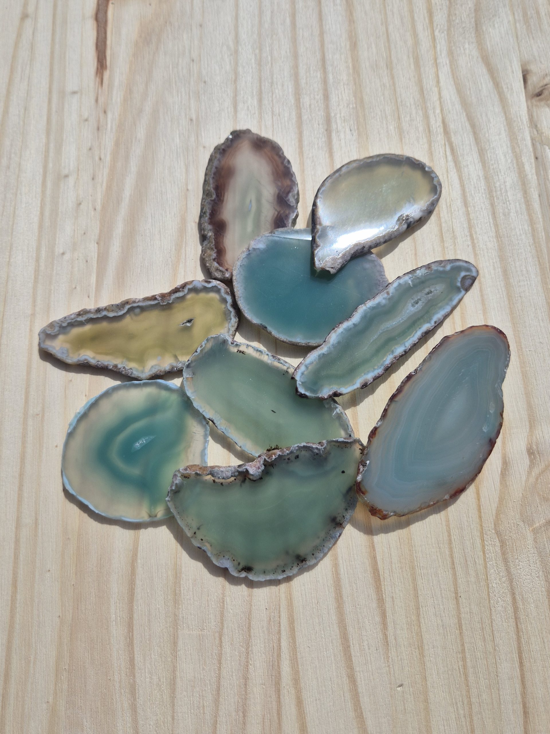 La tranche d’agate verte peut être purifiée à l’eau courante et rechargée au soleil ou en pleine lune afin de maintenir ses propriétés vibratoires. Cela garantit que votre pierre conserve une énergie positive, amplifiant ainsi ses bienfaits à chaque utilisation.
